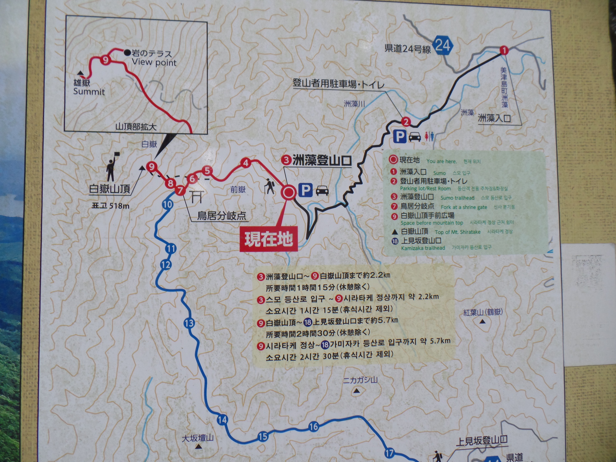 일본의 100대명산답게 안내가 잘 되어 있으며, 한글도 병기되어 있다.