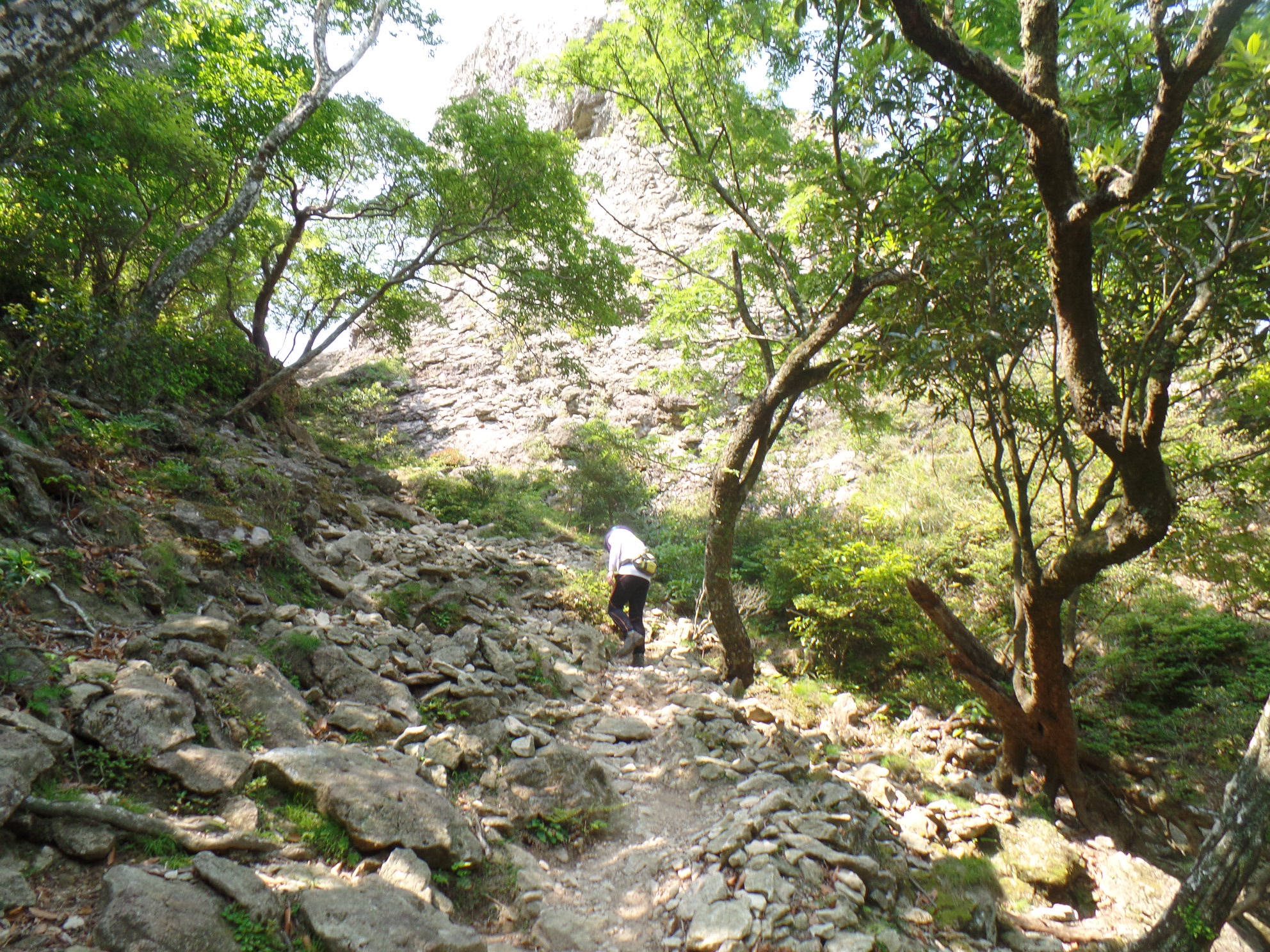 시라다케 정상을 오르기 위한 험악한 산행이 시작된다.