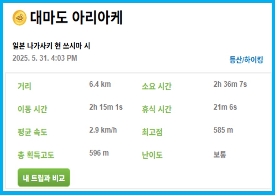 이러케 해서 대마도 첫날의 아리아케 산행을 상큼하게 마쳤다.