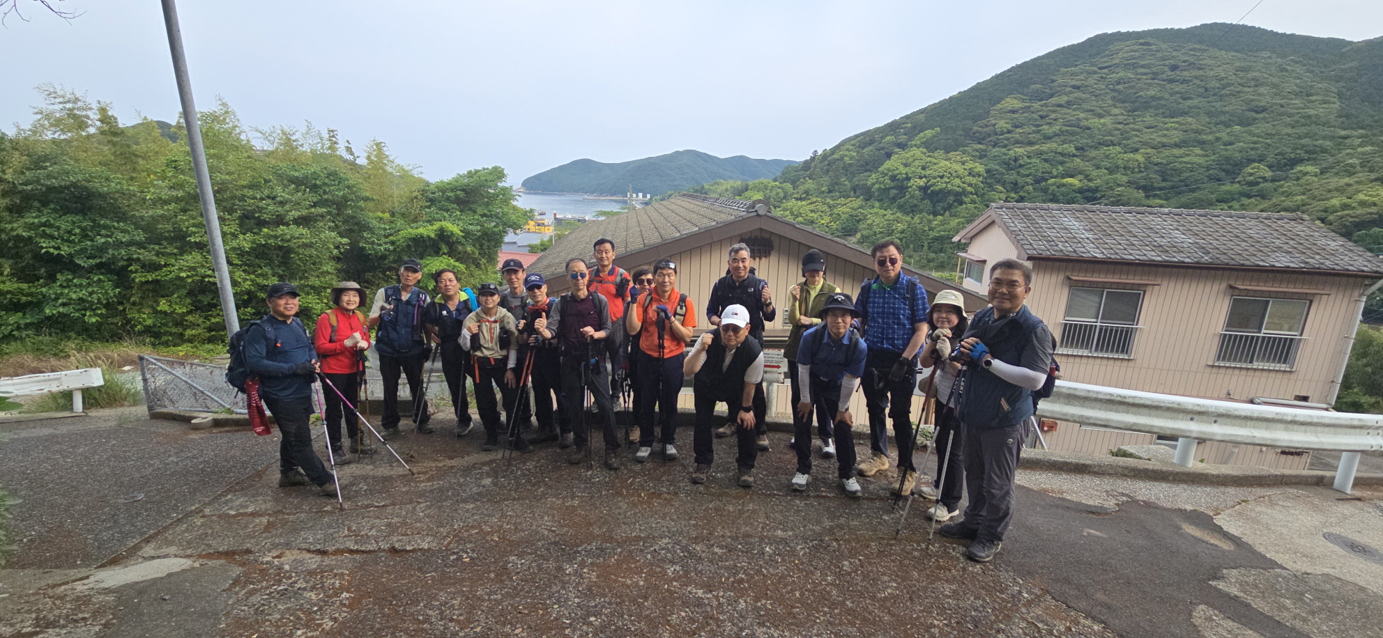 ▼이즈하라 산행들머리에서 출발 전 단체사진 한컷...