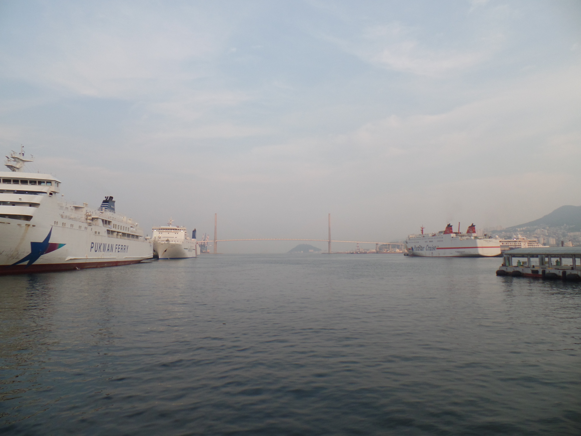 히타카츠항을 출발한 후 약 1시간 40분을 항해하여 부산항에 도착했다.