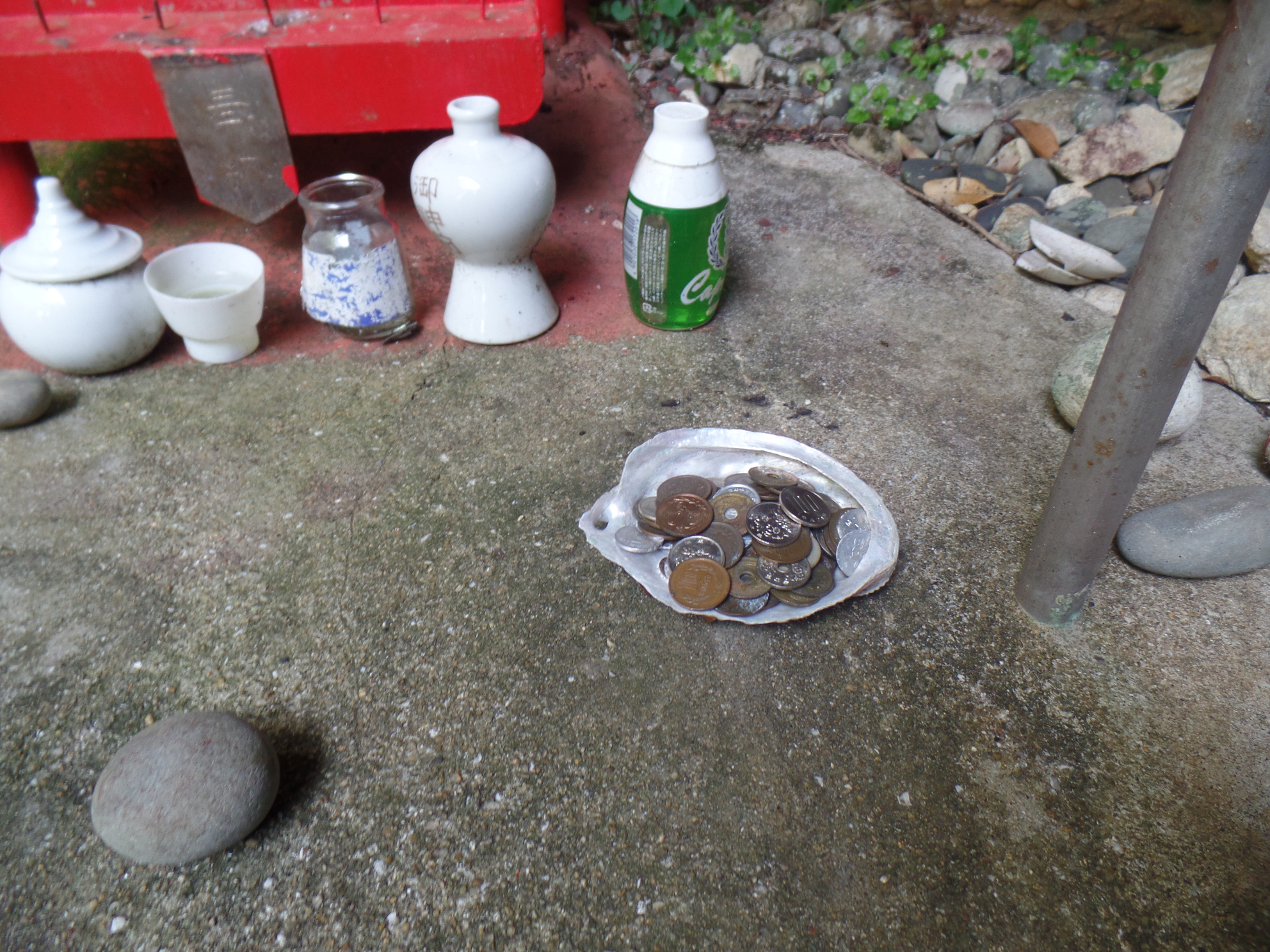 돈을 내고 기도하라는 곳인거 같아 일본 동전을 접시에 담고 안전산행을 기원한다.