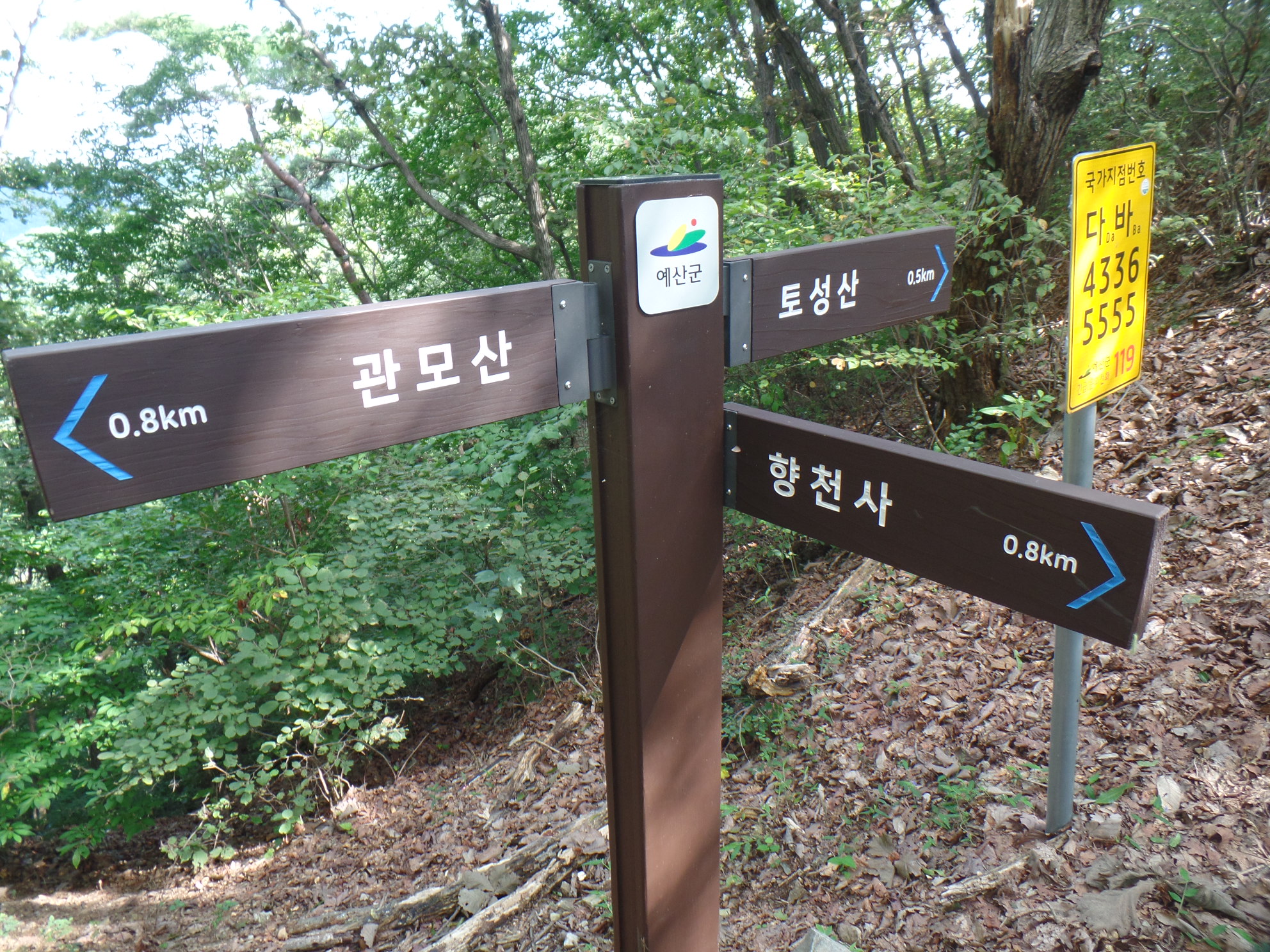 국가지점번호가 곳곳에 설치되어 있어 산행에 많은 도움을 준다.