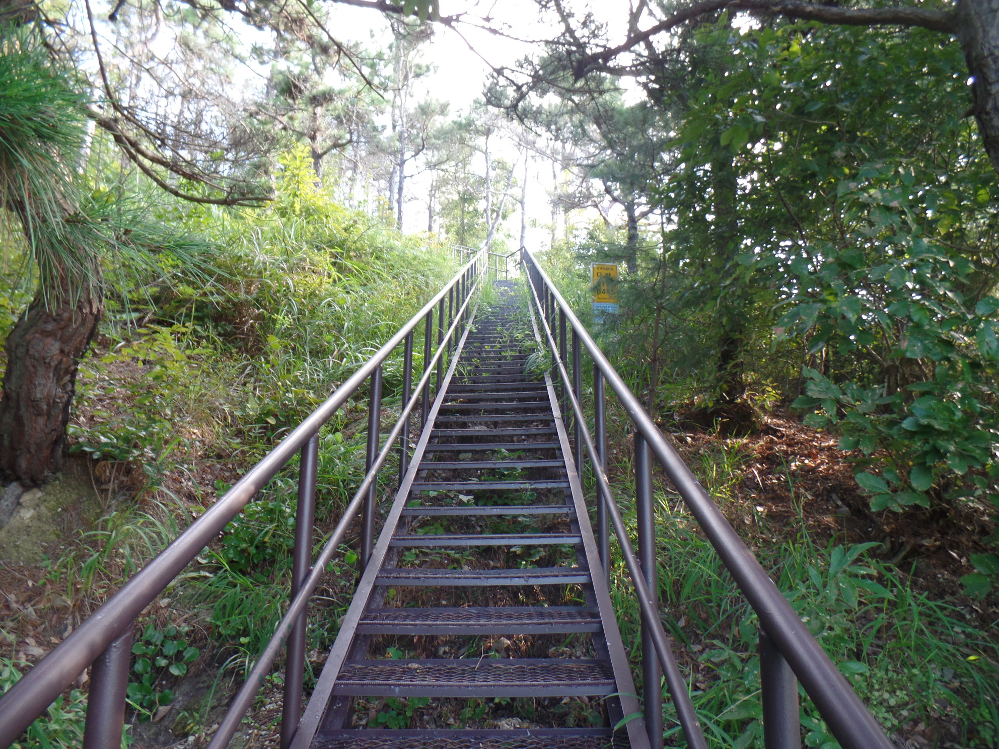 정상까지 여러개의 데크계단을 올라간다.
