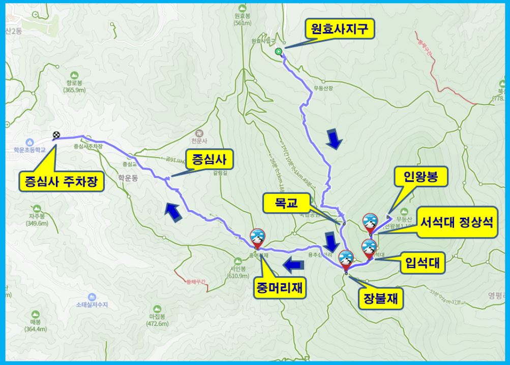 원효사지구(10:48)-목교(12:00)-장불재(12:15)-서석대 정상석(12:45)-인왕봉(13:00)-장불재(13:33~14:10)-중머리재(14:40)-증심사(15:30)-증심사 주차장(16:09)