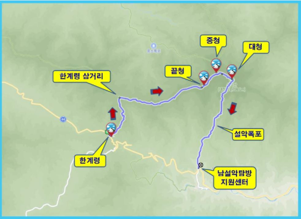 설악산 대청봉을 15번째 올랐다. * 오늘의 산행 코스는... 한계령 휴게소-한계령 삼거리~끝청~중청대피소~대청봉~오색(총 13.4Km, 7시간 3분 소요) * 각 구간별 거리 및 소요시간 -한계령 휴게소(10:09)~한계령 삼거리(11:22) : 1시간 13분 소요 구간거리 2.3Km -한계령 삼거리(11:22)~끝청(13:20) : 1시간 58분 소요 구간거리 4.4Km(누적 6.7km), 누적시간 3시간 11분 -끝청(13:20)~중청대피소(13:58) : 38분 소요 구간거리 1.1Km(누적 7.8km), 누적시간 3시간 49분 -중청대피소(13:58)~대청봉(14:18) : 20분 소요 구간거리 0.6Km(누적 8.4km), 누적시간 4시간 9분대청봉에서 인증샷 5분 촬영-대청봉(14:2..